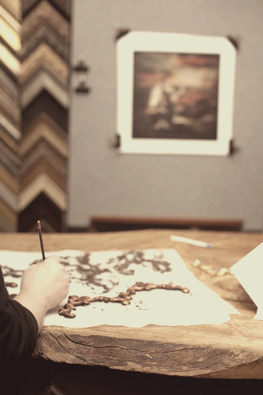 Although many framers have computerised matboard cutters that have pre programmed designs our framing artisans can create an inspired design and carve it by hand. This creates endless opportunities to truly customise your framing design.